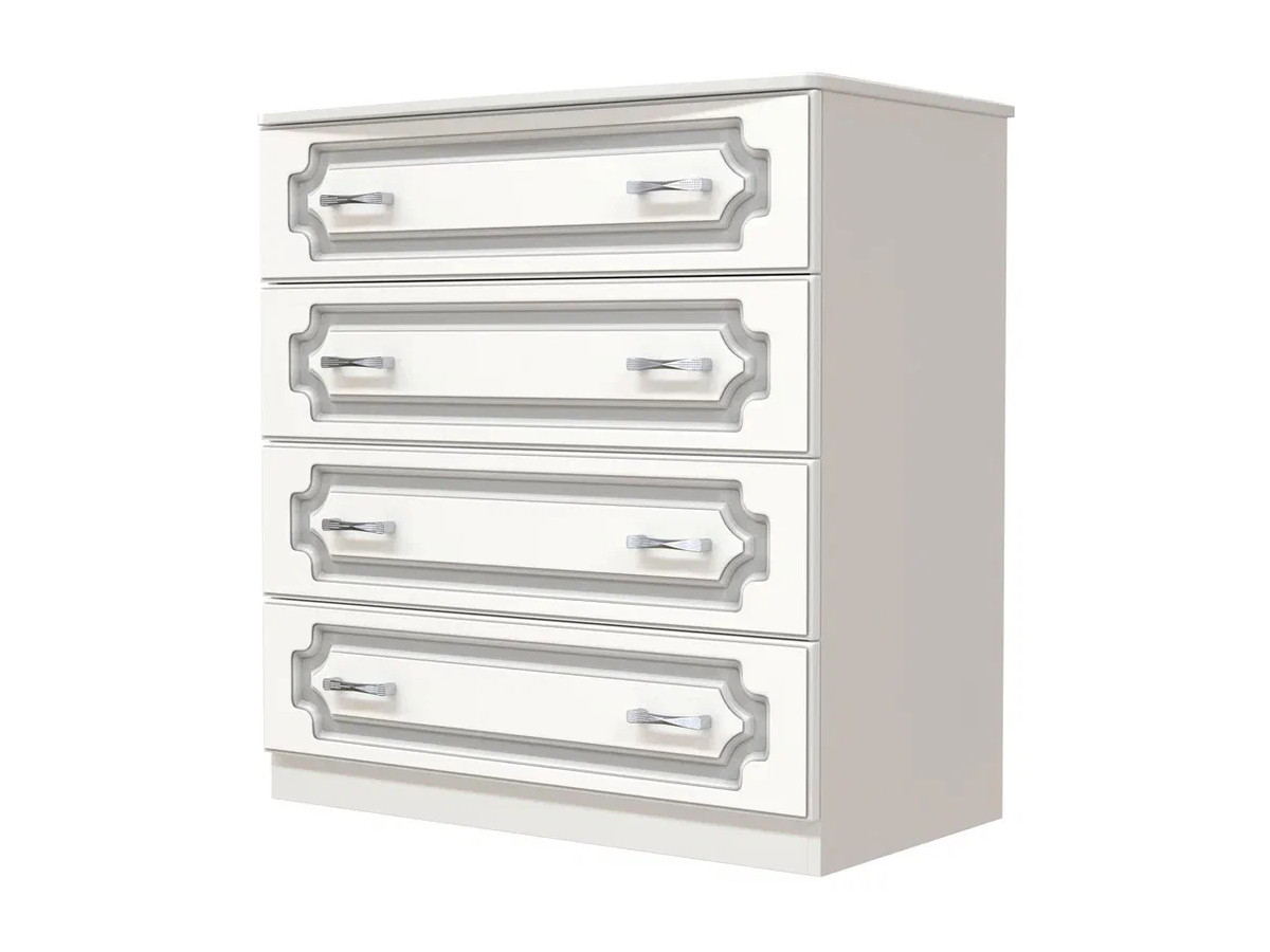 - Комод 4 ящика Лак Белый жемчуг