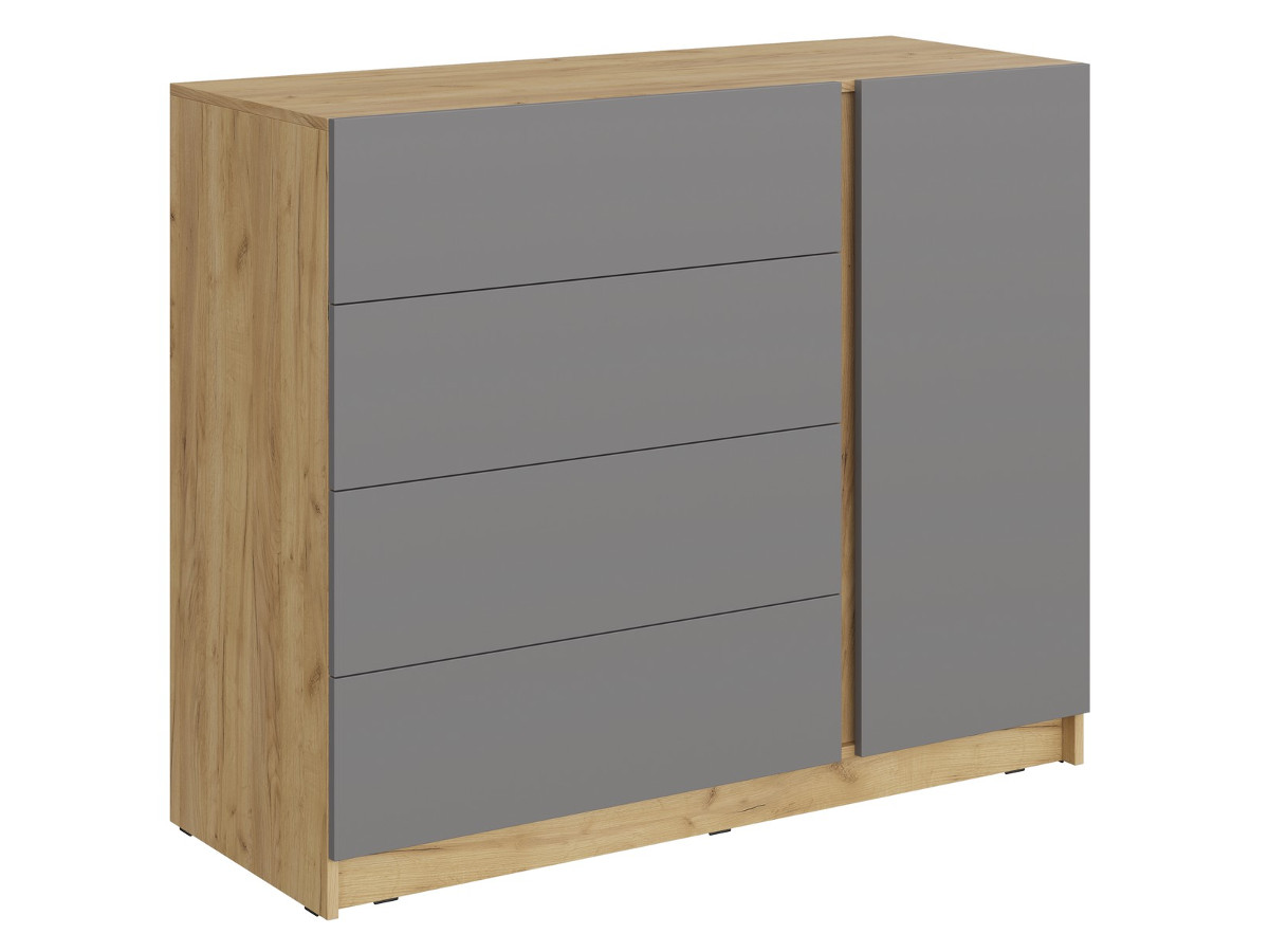 - Комод КМ-001 Бостон ЛДСП дуб крафт золотой-серый шифер