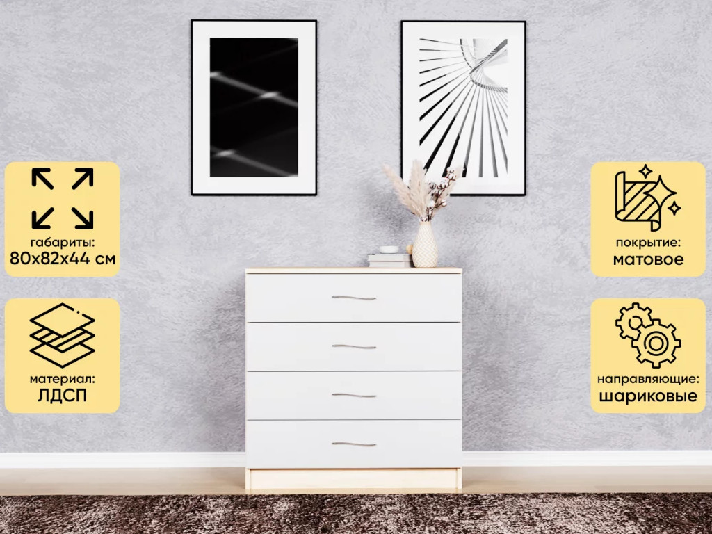 - Комод Космос Нэо с 4-мя ящиками Дуб сонома-Белый