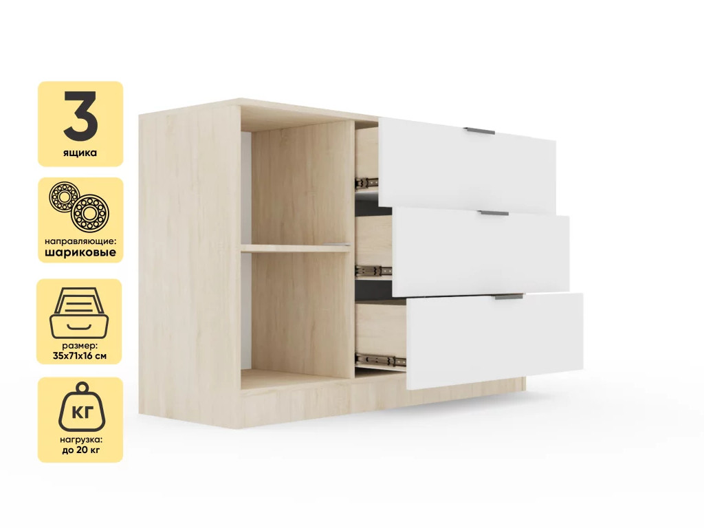 Комод Монблан 1200 Дуб сонома-Белый Шагрень