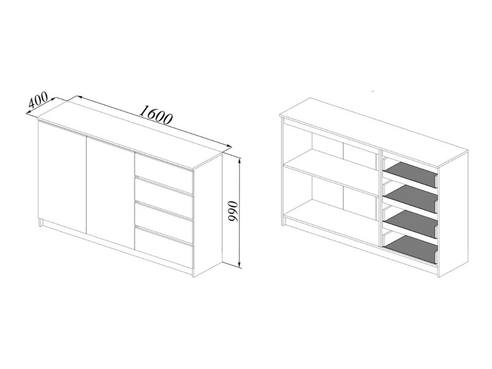 - Комод Мори МК1600.1 2 двери и 4 ящика