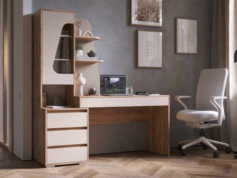 - Три ящика в тумбе + Один широкий ящик под столешницей.