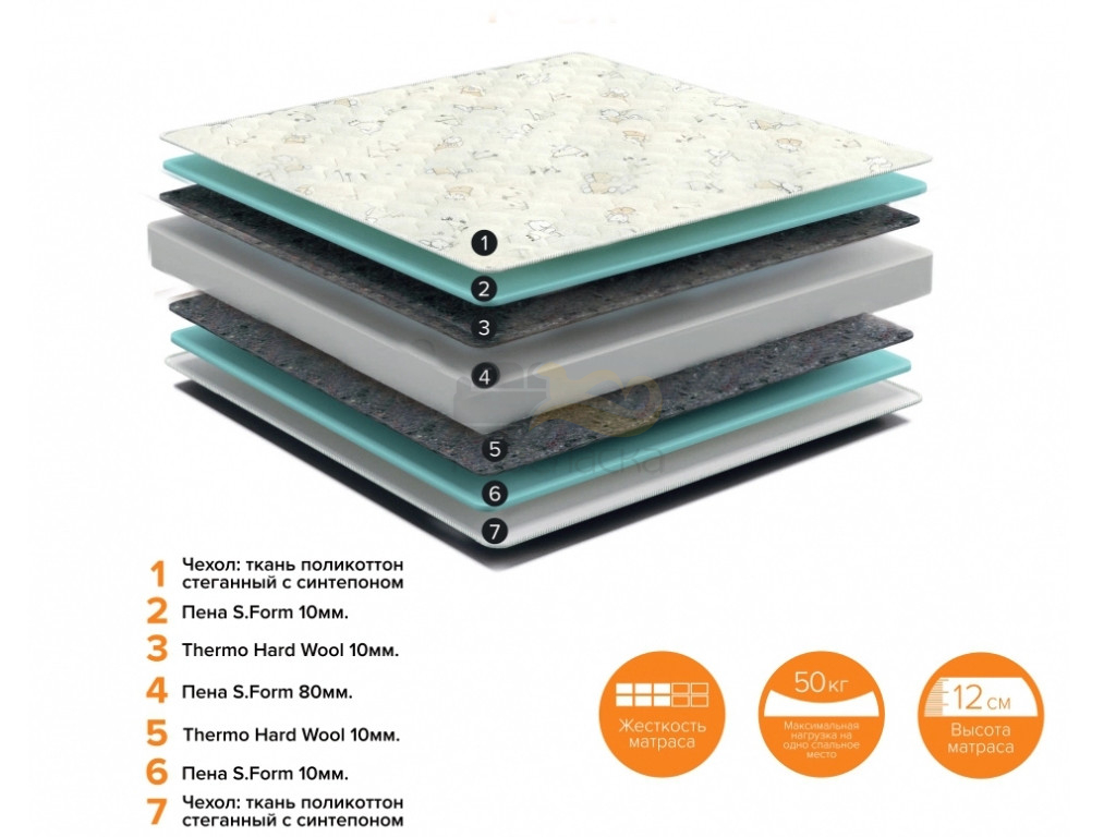 Наполнение : Ортопедическая пена + термоойлок Thermo Hard Wool.
