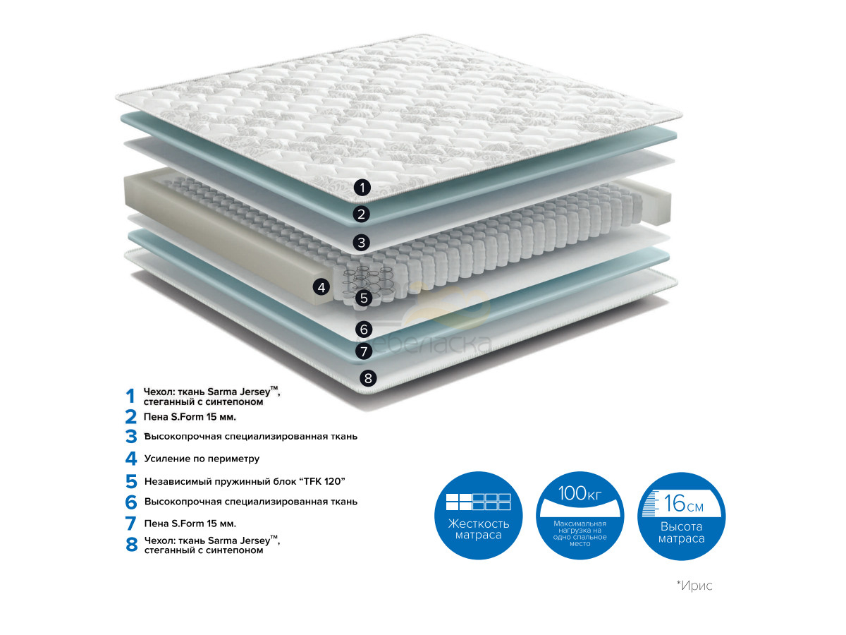 Наполнение: Независимый пружинный блок "TFK 120" + ППУ 1,5см + усиление по периметру