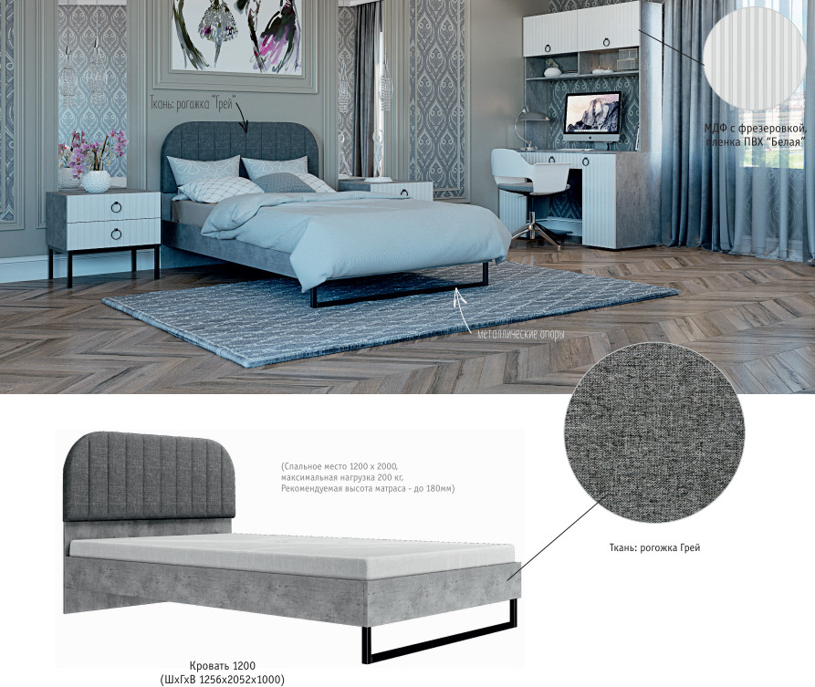 Цена за комплект: Кровать 1200, Тумба (2шт), Стол письменный, Полка навесная (Б 2.1.3)