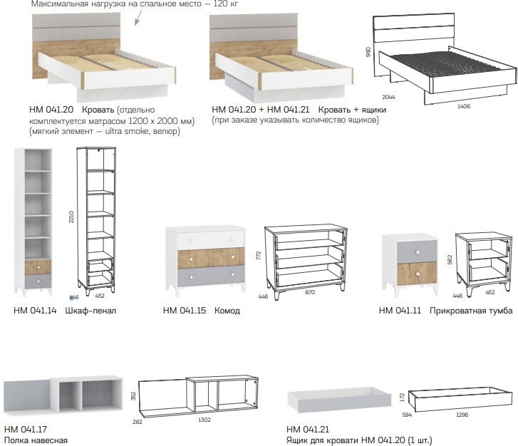 - НМ 041.20 Кровать ( 0,166 м3) Ш 1406 x Г 2044 x В 960 (Сп. место: 1200*2000) мм - 20680 руб