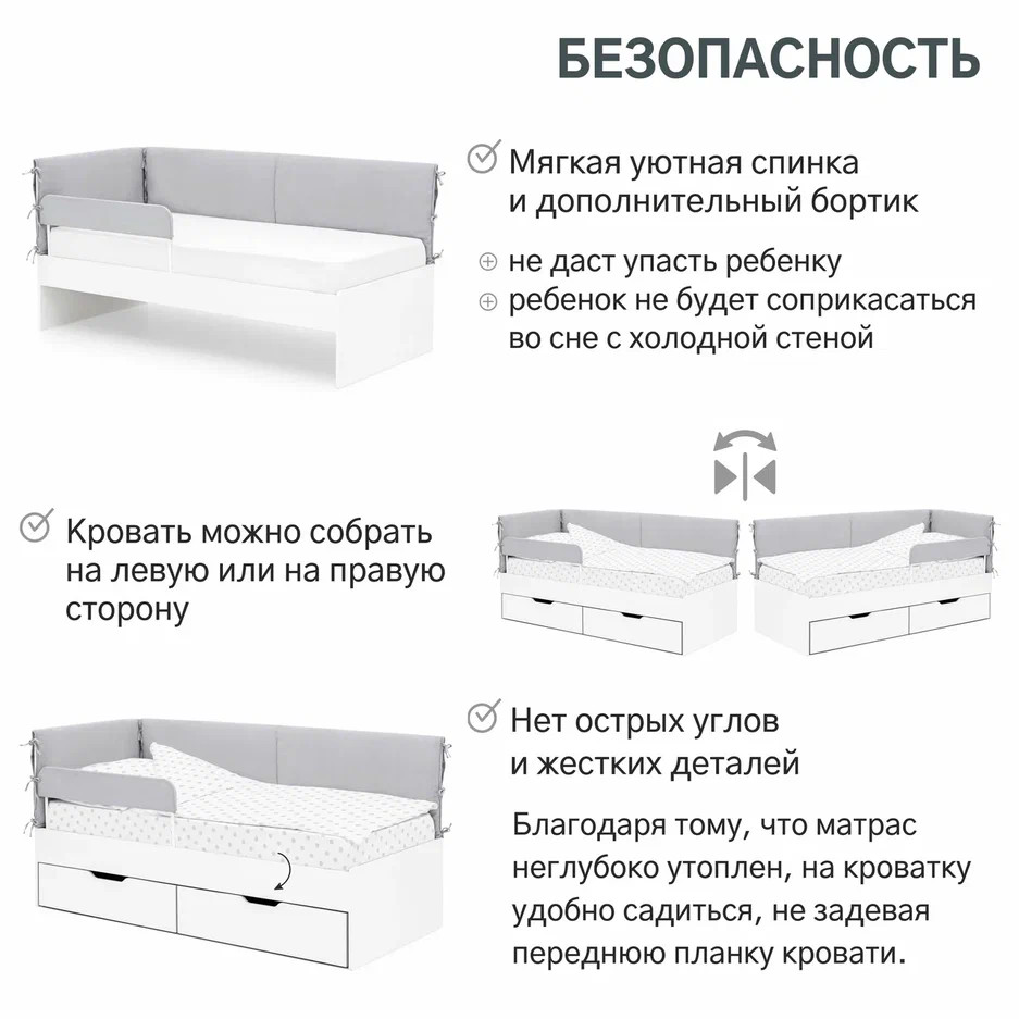 Детская мягкая кровать с накидным чехлом Бельмарко “Denvas” – это комфортное место для сна и игр мальчика или девочки от 2 до 10-12 лет.