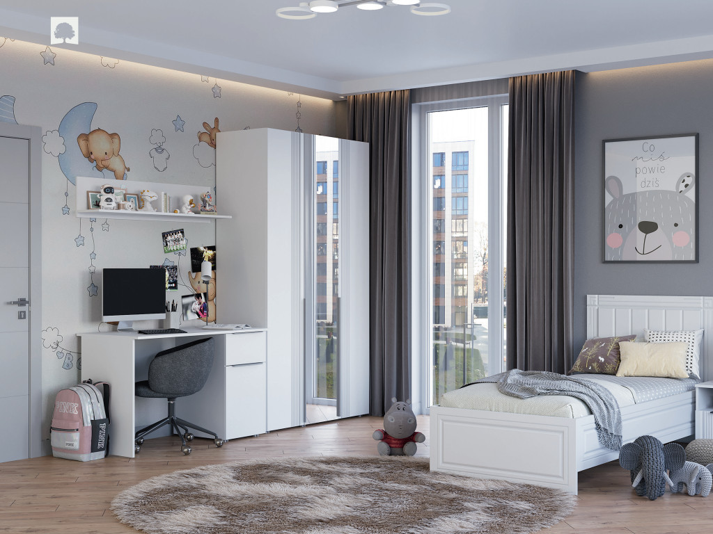 Цена за комплект: Стол письменный ПРАВЫЙ, Полка настенная №2, Шкаф 3-ств с зеркалом, Кровать 0,9, Настил 90