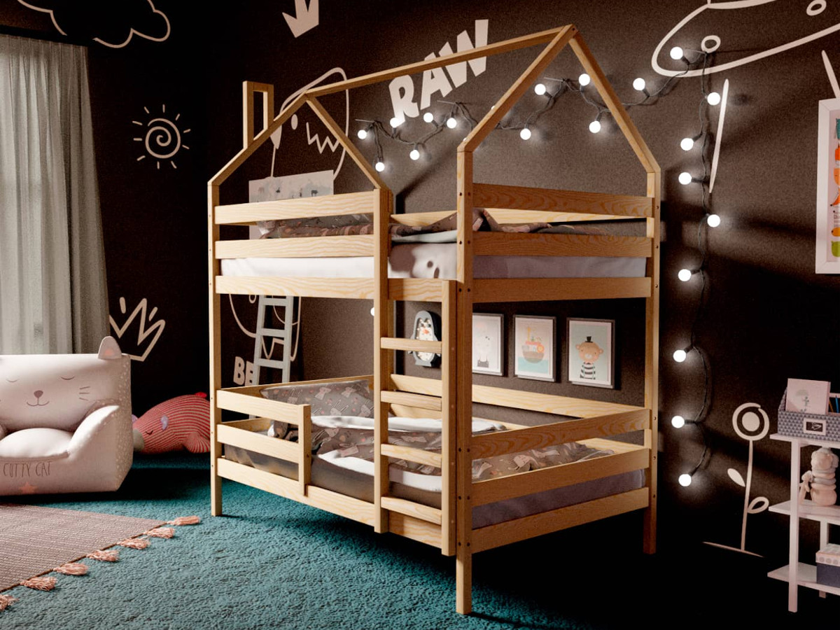 Двухъярусная кровать-домик без покраски 80х190 см