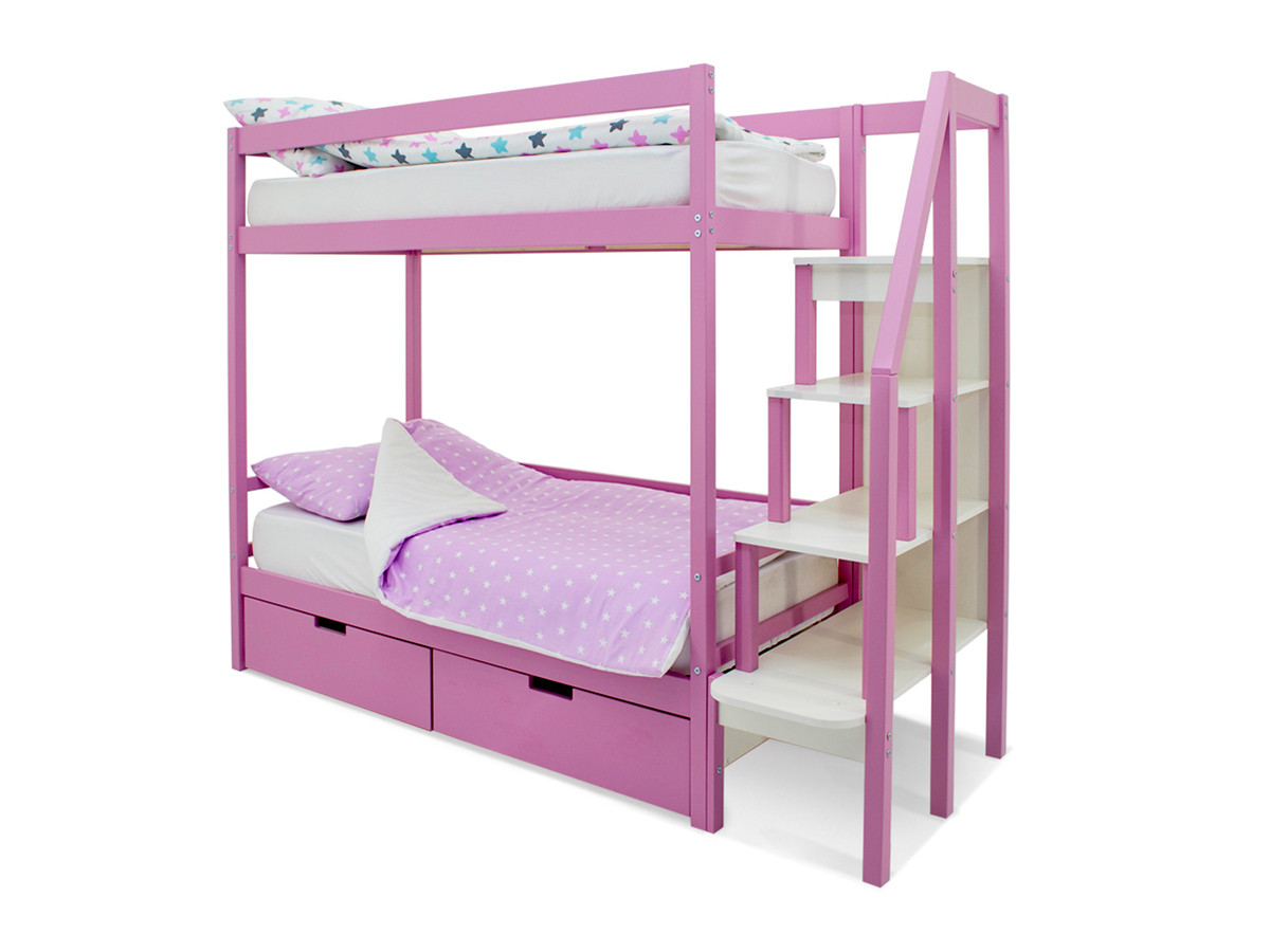 Двухъярусная кровать Svogen с ящиками лаванда