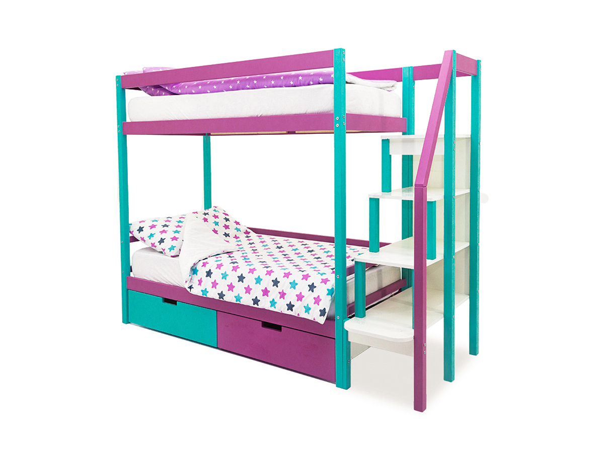 Двухъярусная кровать Svogen с ящиками мятный-лаванда