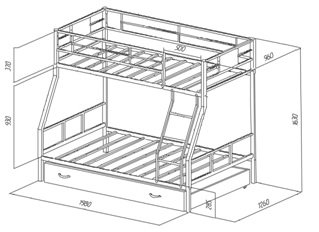 ширина нижнего спального места 1200х1900 мм