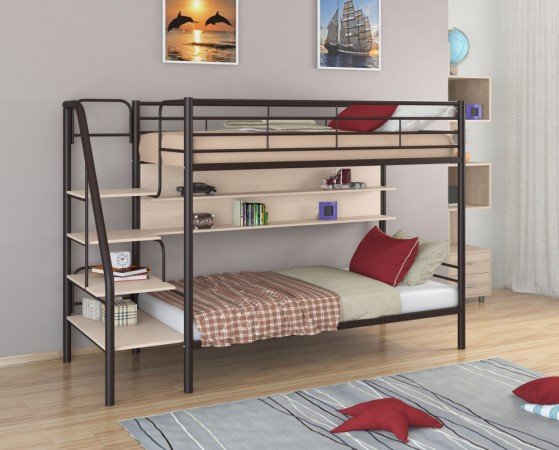 - Двухъярусная кровать Толедо П коричневый/молочный