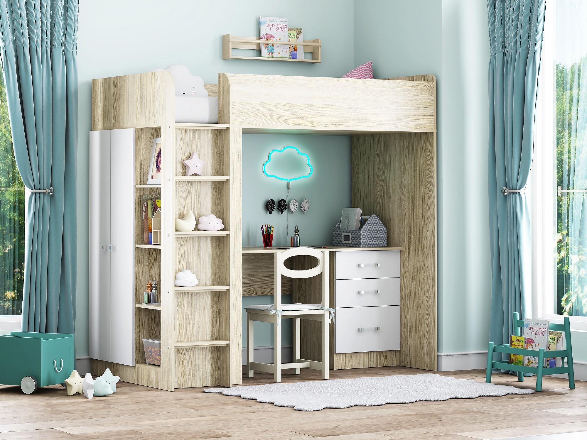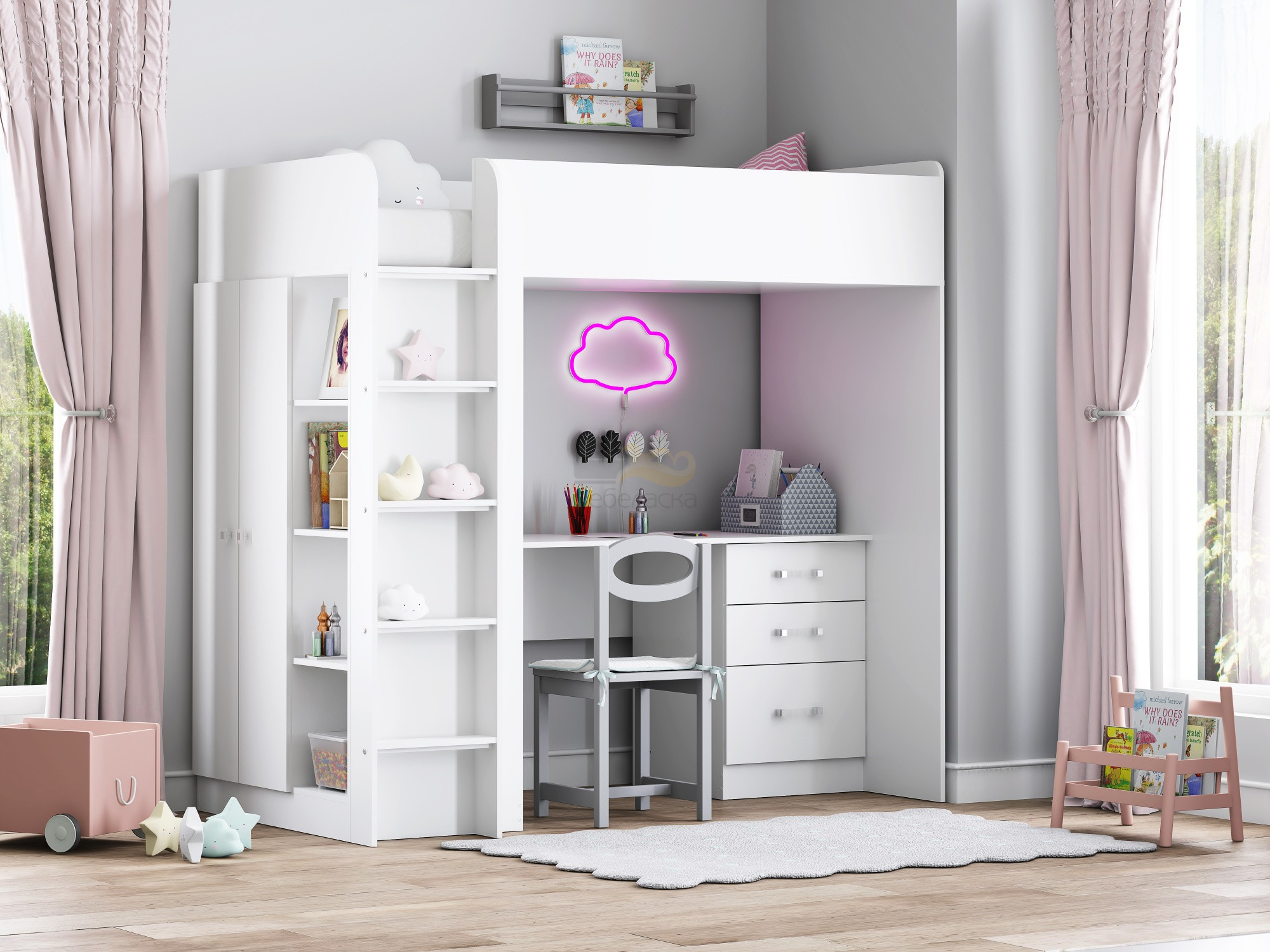 - Кровать чердак Теремок 3 Белый