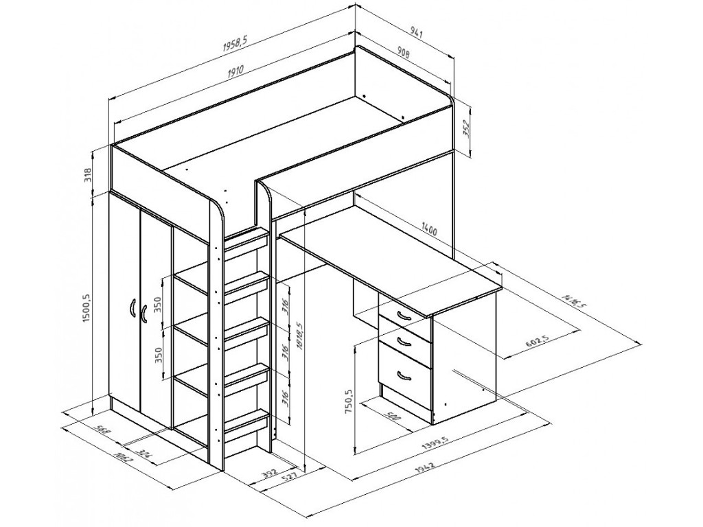 - рабочего стола с выдвижными ящиками.