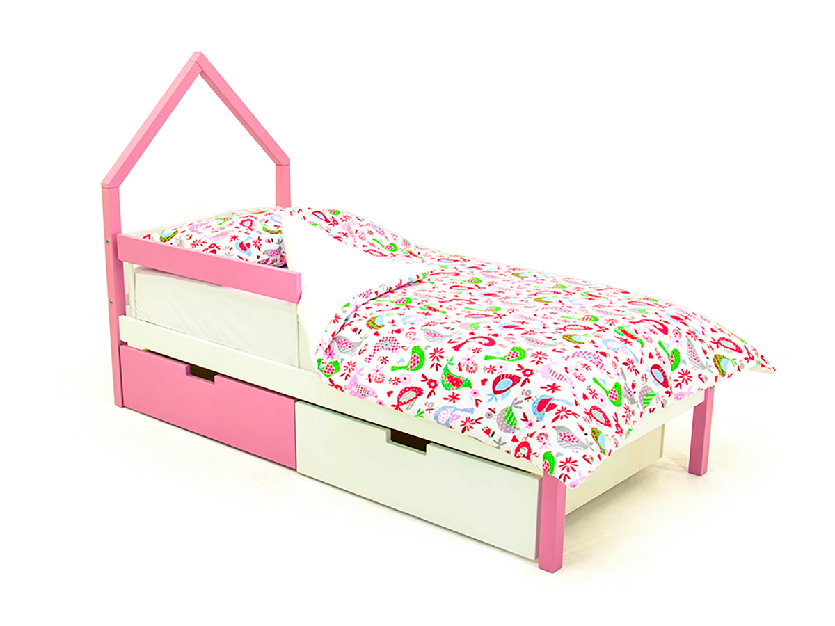 - Кровать-домик мини Svogen с ящиками и бортиком лаванда-белый