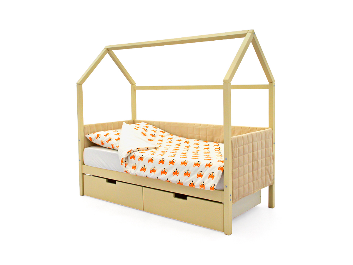 - Кровать-домик мягкий Svogen с ящиками бежевый