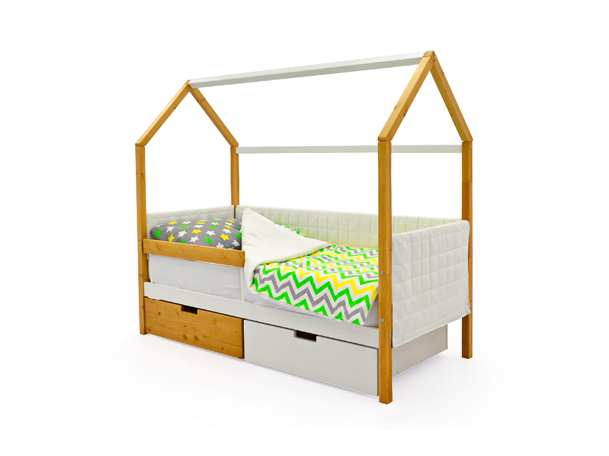 Кровать-домик мягкий Svogen с ящиками и бортиком дерево-белый
