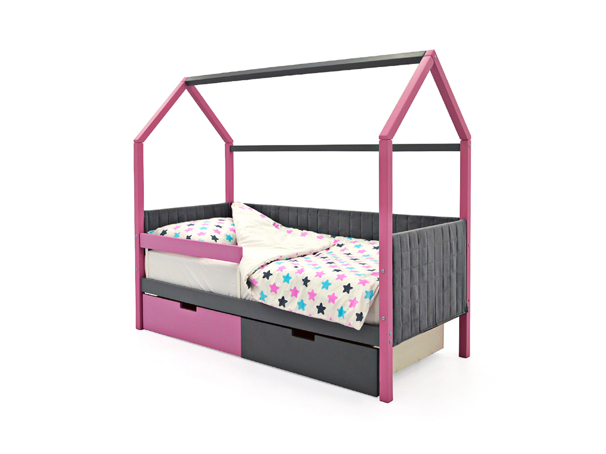 - Кровать-домик мягкий Svogen с ящиками и бортиком лаванда-графит