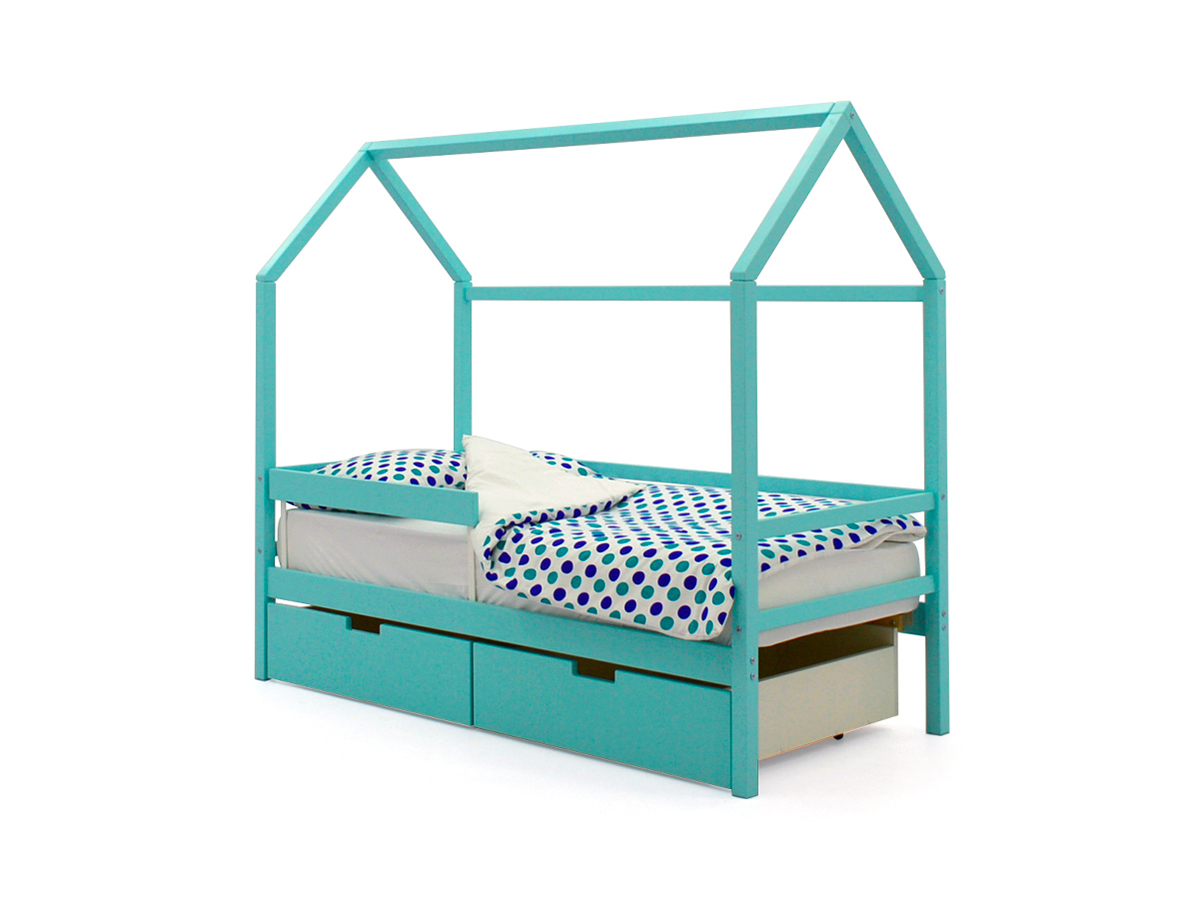 - Кровать-домик Svogen с ящиками и бортиком мятный