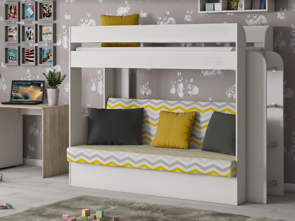 Кровать двухъярусная Карамель 75 бодега светлый-желтые зигзаги