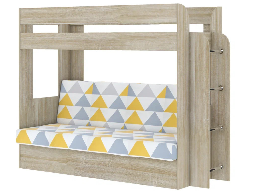 - Кровать двухъярусная Карамель 75 сонома-желтые треугольники