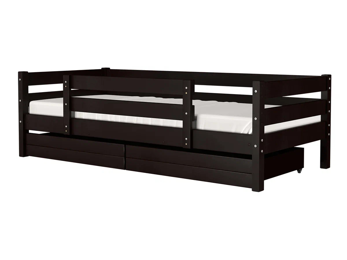 - Кровать Глория с бортиком и ящиками Орех темный