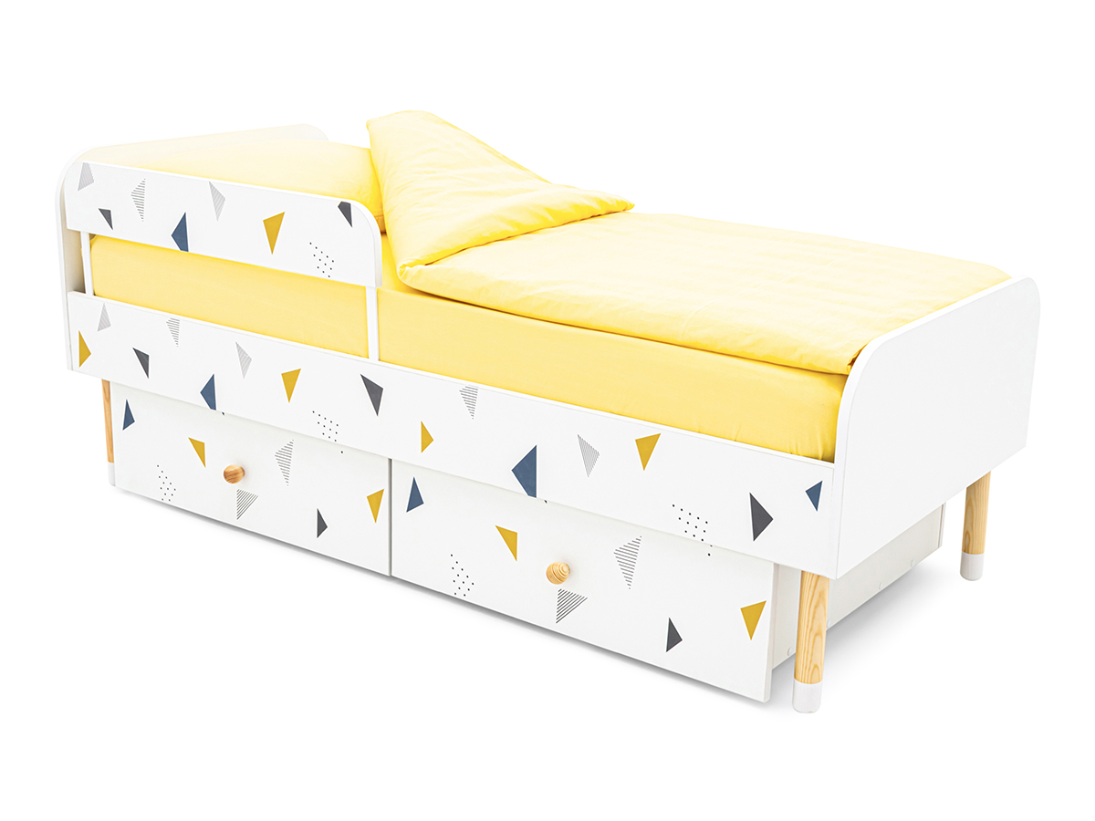 - Кровать Stumpa Классика с бортиком и ящиками Треугольники желтый, синий