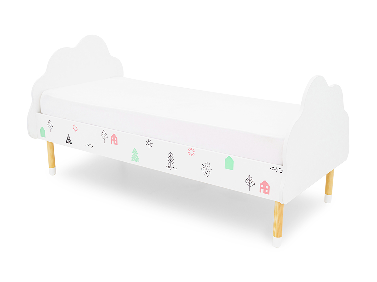 - Кровать Stumpa Облако с рисунком Домики розовый, бирюзовый