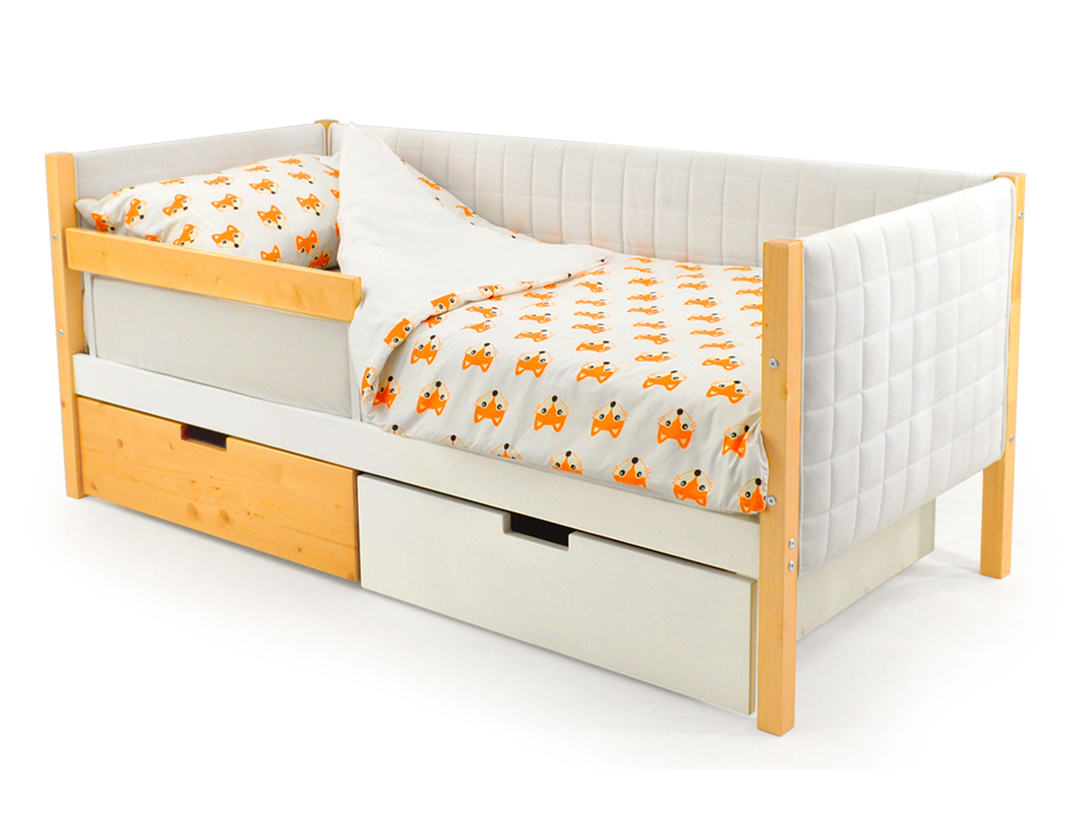 Кровать-тахта мягкая Svogen с ящиками и бортиком дерево-белый