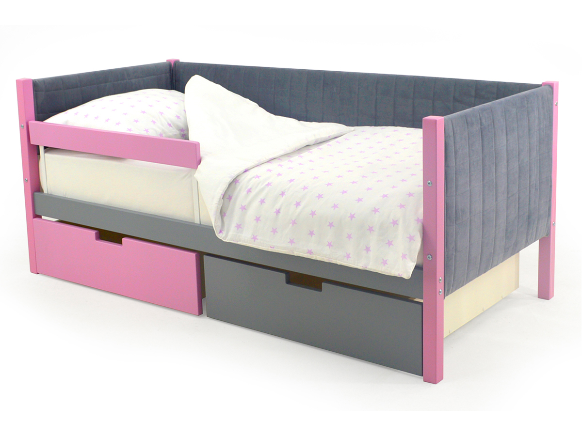 - Кровать-тахта мягкая Svogen с ящиками и бортиком лаванда-графит