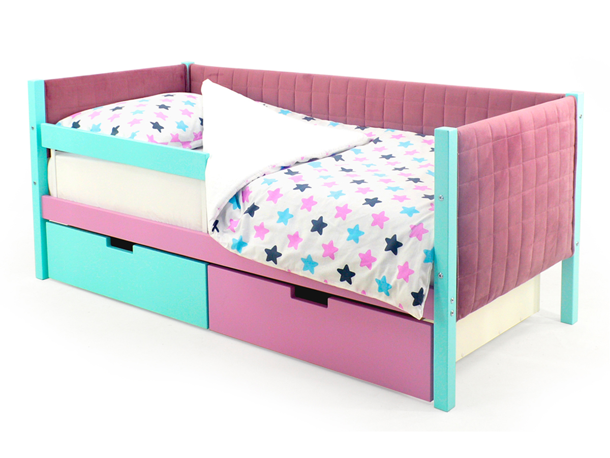 Кровать-тахта мягкая Svogen с ящиками и бортиком мятный-лаванда