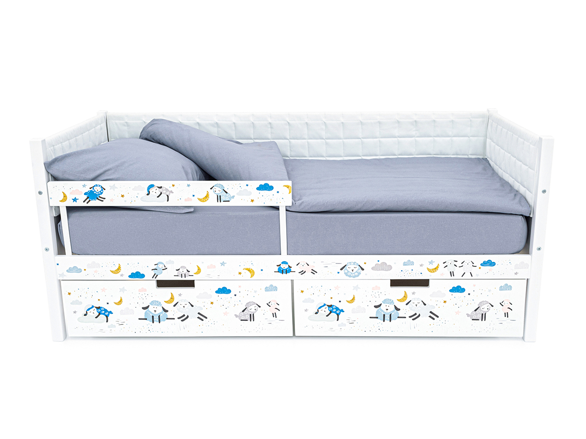 Кровать-тахта Svogen мягкая с ящиками и бортиком с фото белый/барашки