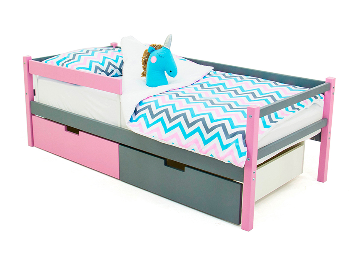 Кровать-тахта Svogen с ящиками и бортиком лаванда-графит