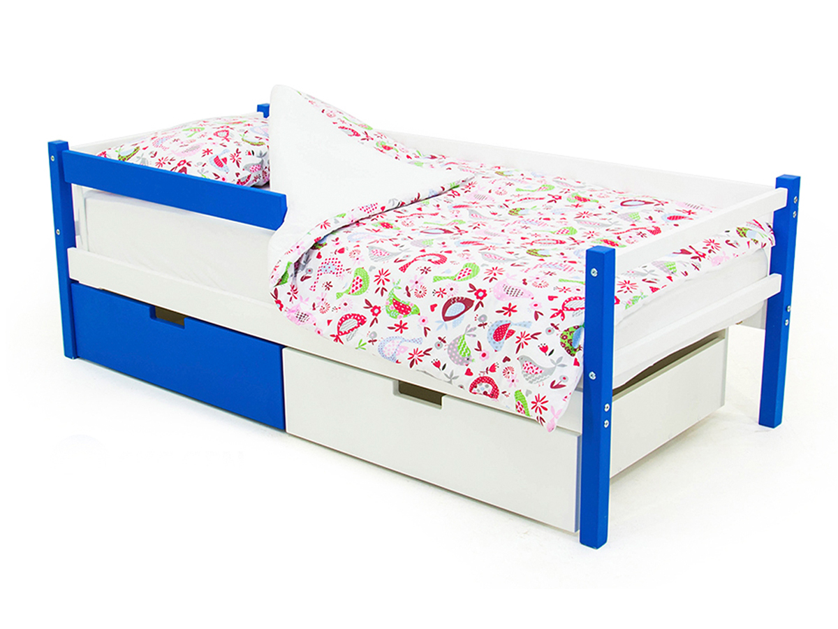 Кровать-тахта Svogen с ящиками и бортиком сине-белый