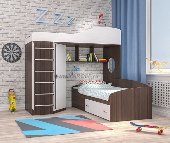 - Кровать-чердак Кадет-2 с металлической лестницей