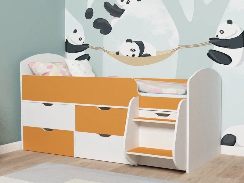 Кровать Малыш-7 белое дерево-оранжевый