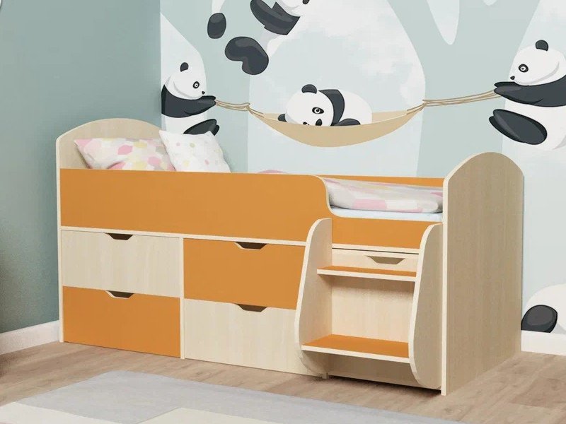 - Кровать Малыш-7 Дуб-Оранжевый