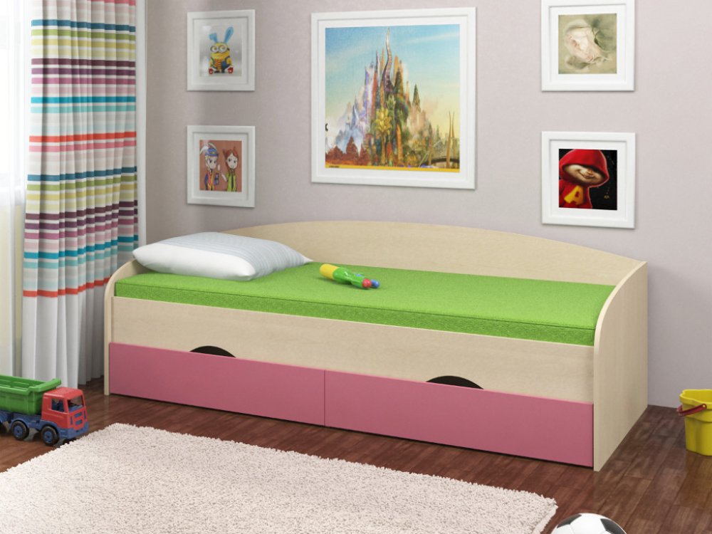 - Кровать Соня 2 дуб молочный-розовый