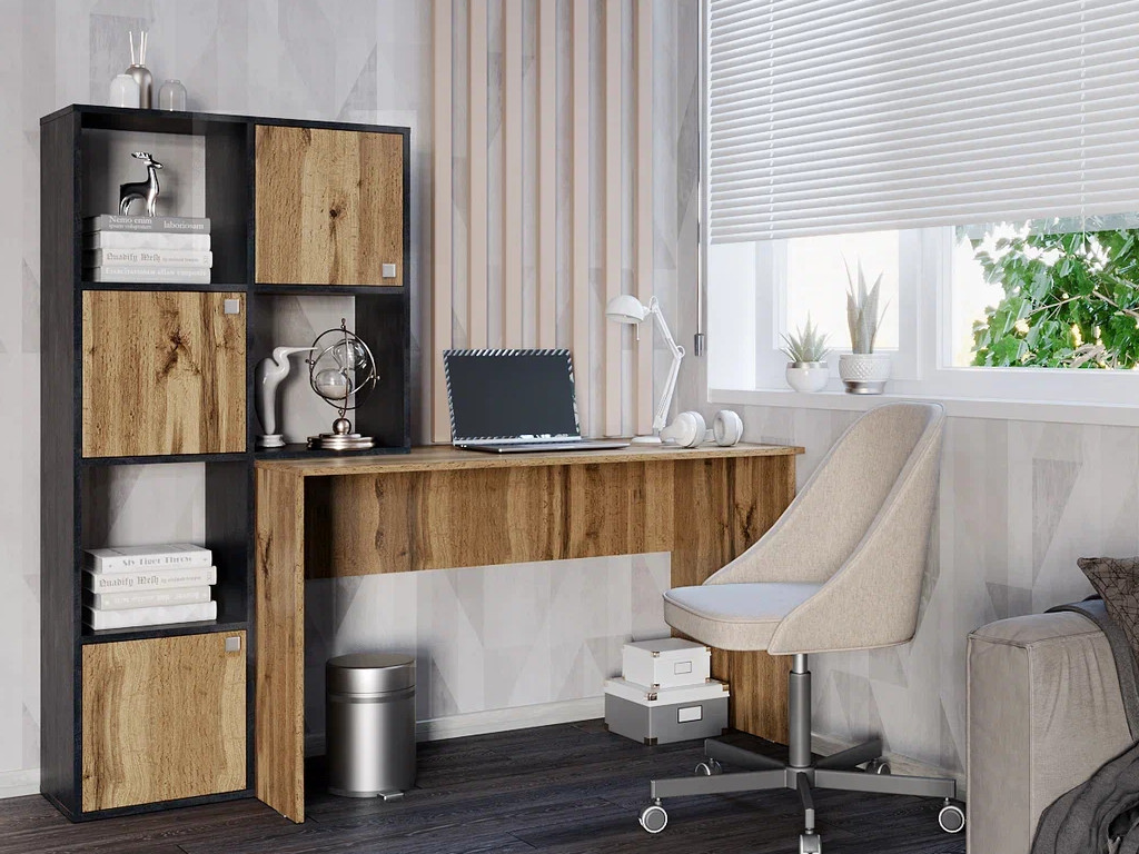 - Стол компьютерный СК Юджин дуб вотан/обсидиан