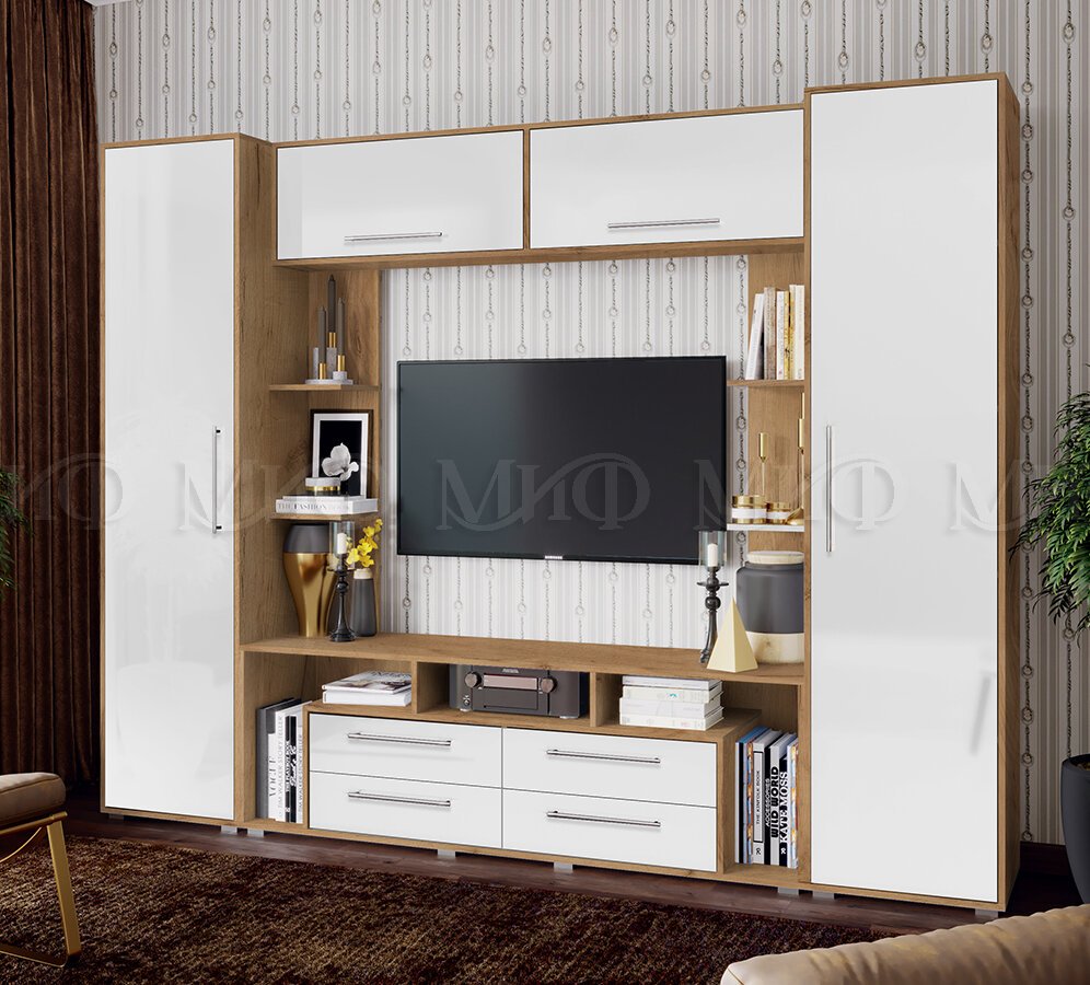 Гостиная Гармония Белый Глянец, Дуб Крафт
