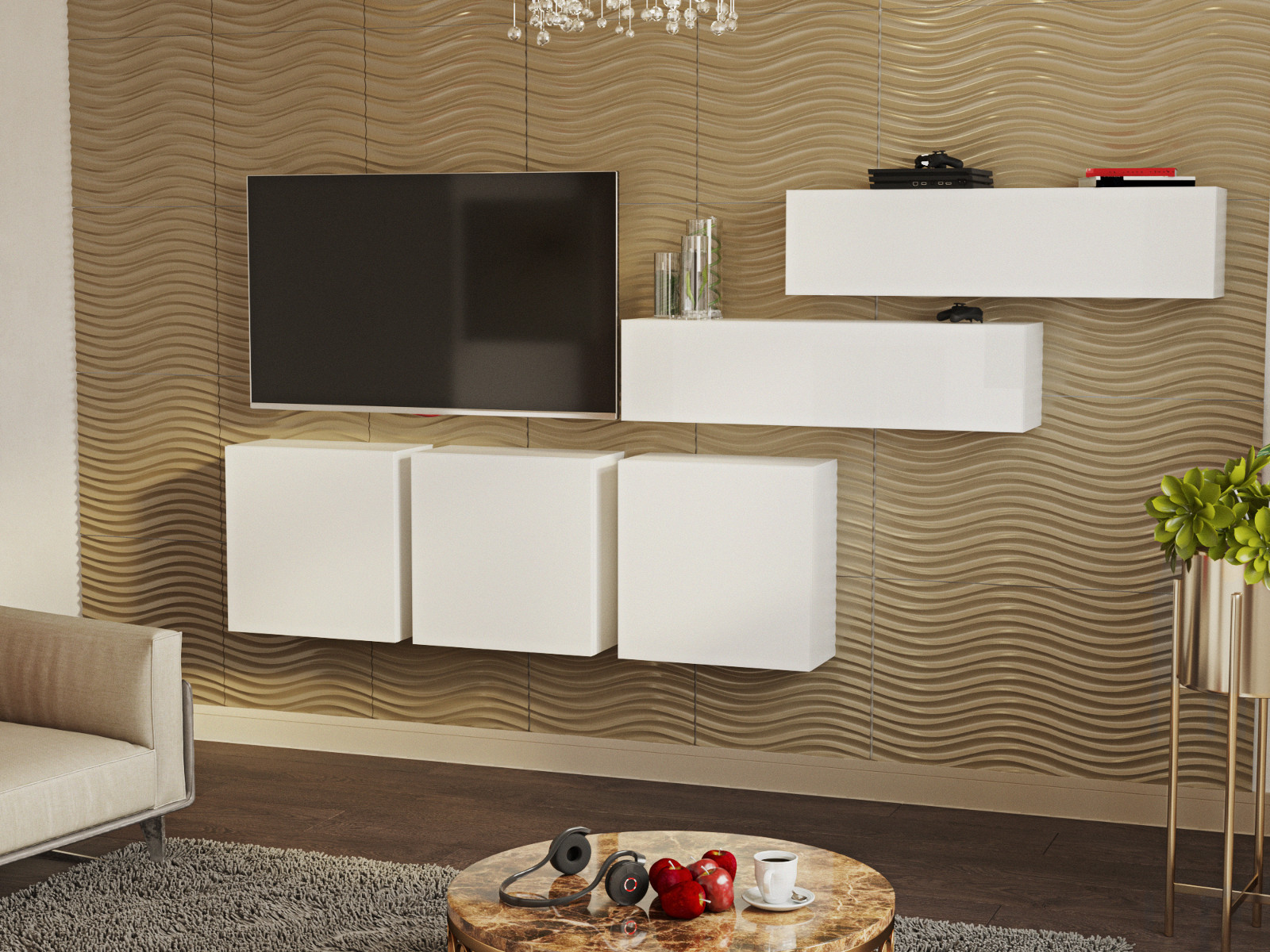 Цвет: навесные модули-белый/ тумбы подвесные ЛДСП-белый, фасад-белый лакобель;