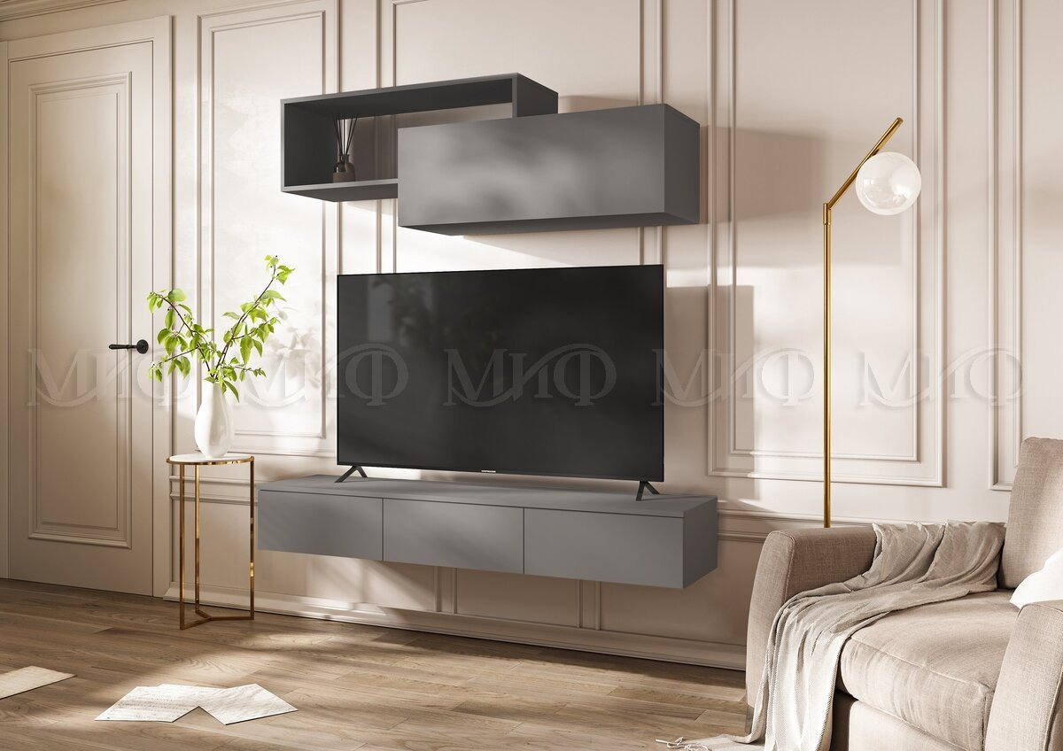 Цена за комплект: Тумба ТВ подвесная , Полка 2-х ярусная