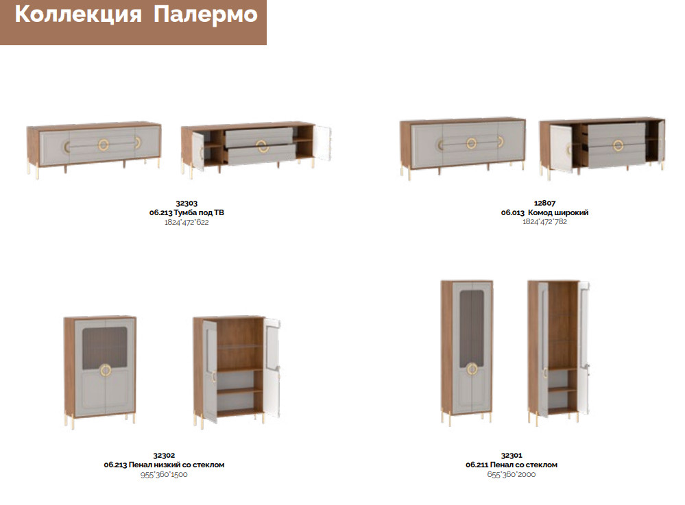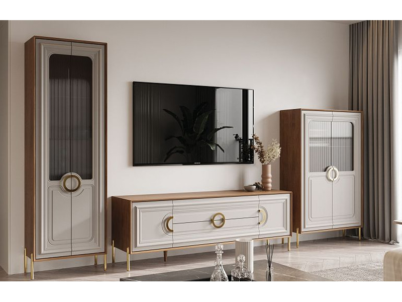 Цена за комплект: Тумба под TВ, Пенал со стеклом, Пенал низкий со стеклом