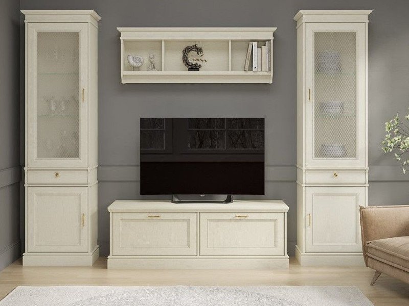 Цена за комплект: Пенал со стеклом (2шт), Полка навесная, Тумба под ТВ