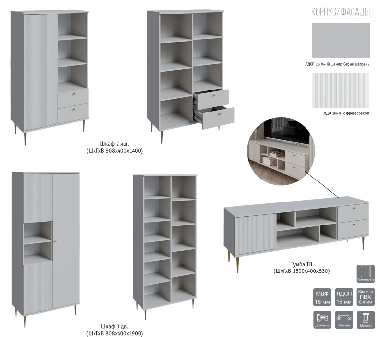 Цвет: ЛДСП Кашемир серый шагрень/Фасад МДФ Сантьяго супер софт