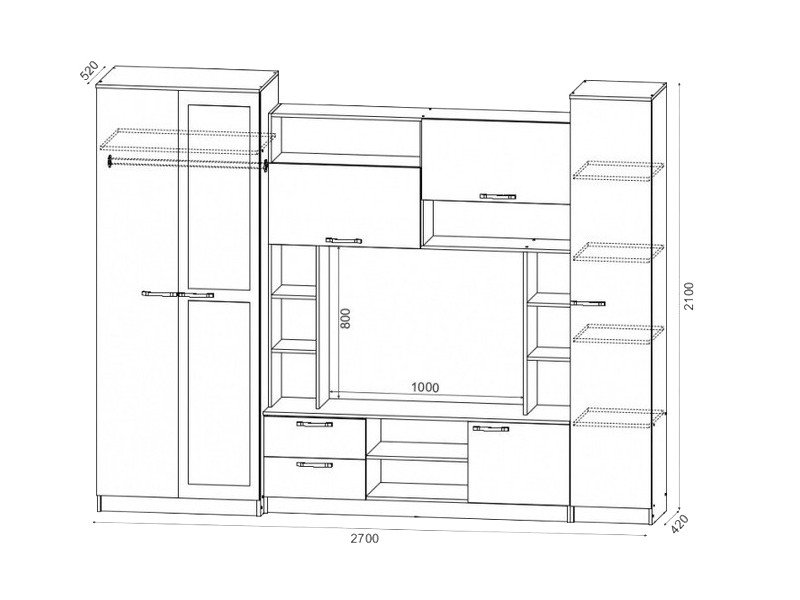 Размеры (Ш*Г*В): 2700*520*2100 мм