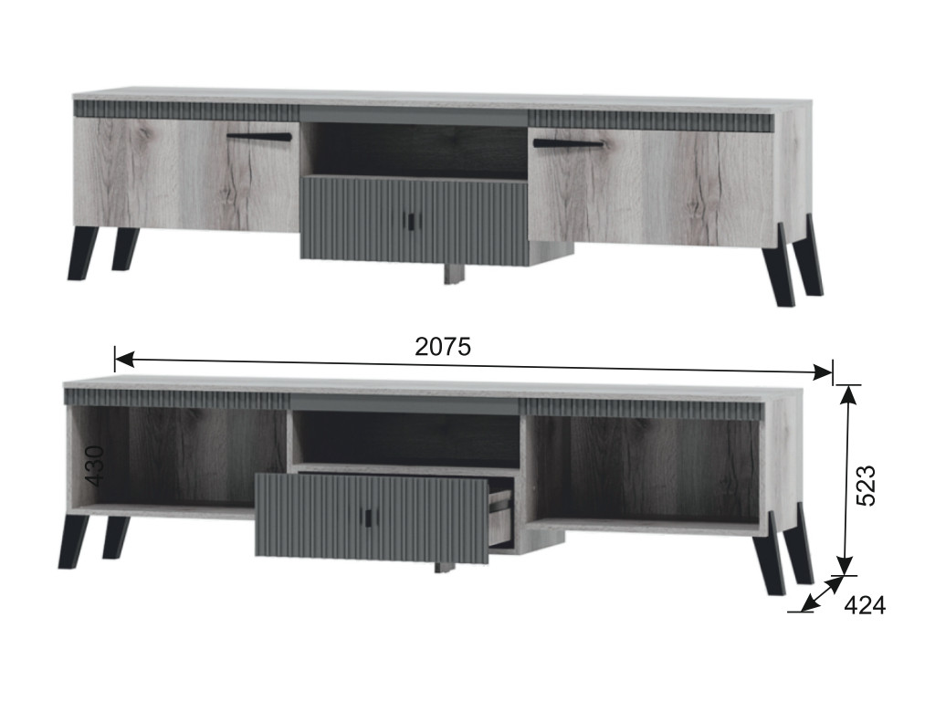 - Тумба ТВ №1 с ножками Ольга 3 дуб делано