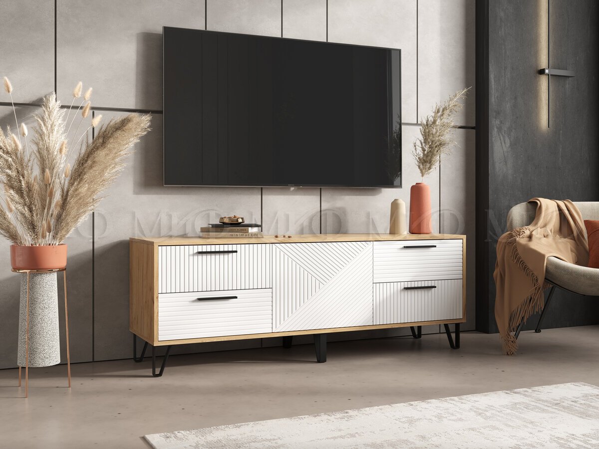 - Тумба ТВ (1500) Флэш Браш Вайт, Дуб Крафт