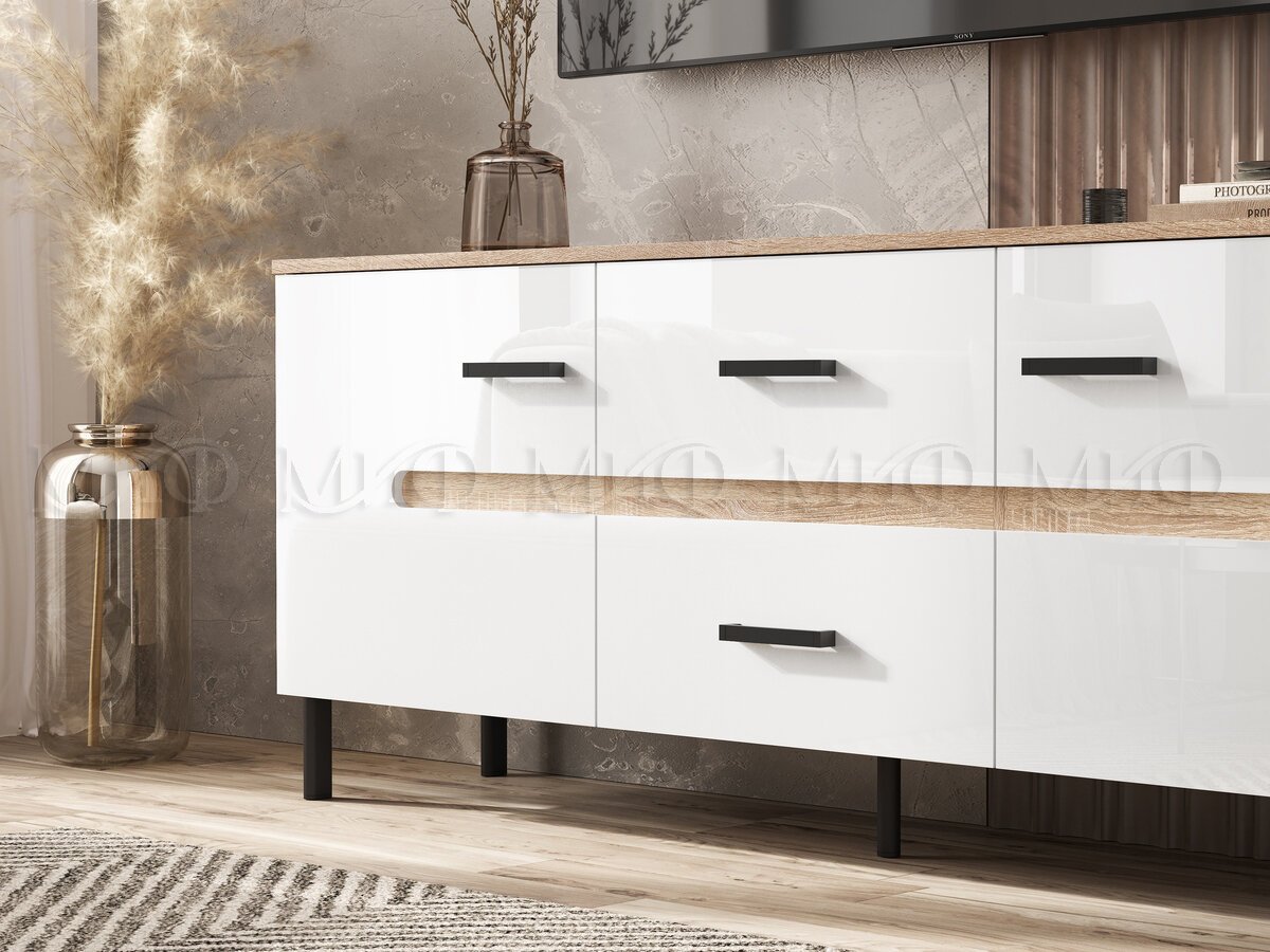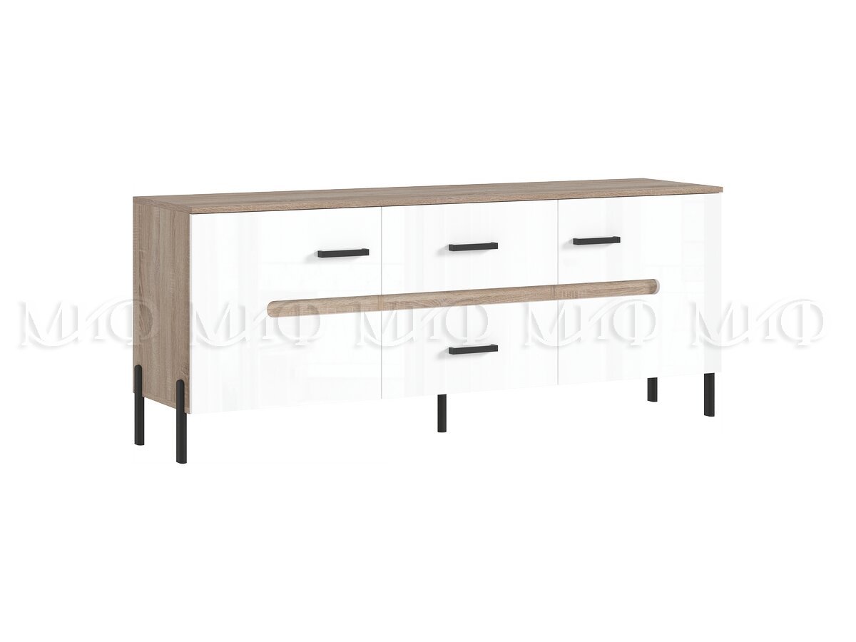- Тумба ТВ (металл) Ким Белый Глянец, Дуб Сонома